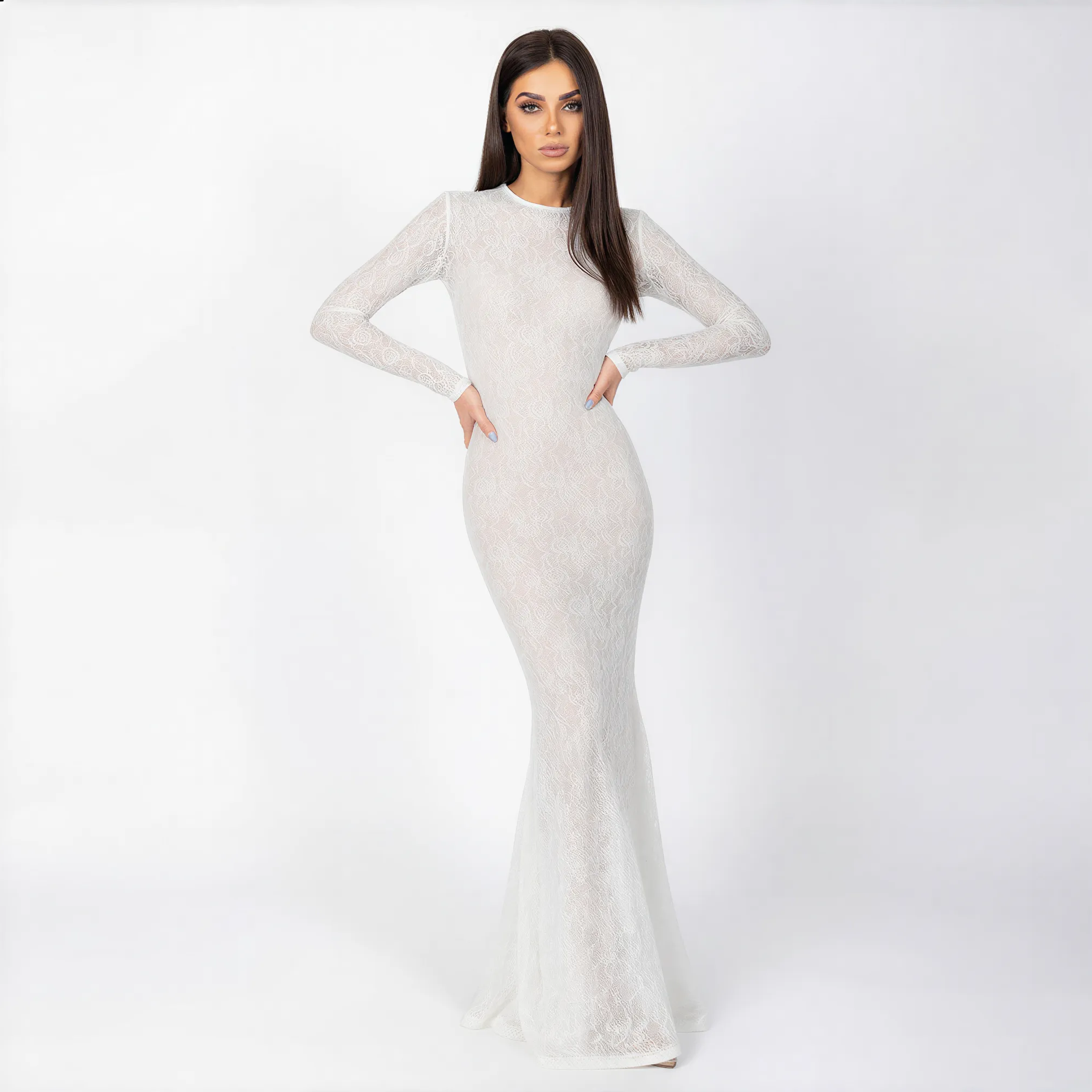Made for the woman who moves through life with quiet confidence. Nadia is crafted from exclusive French lace, soft and very stretchy against the skin. Its long silhouette drapes beautifully with a back zipper for seamless elegance. Whether for a wedding or celebration, let yourself shine effortlessly.